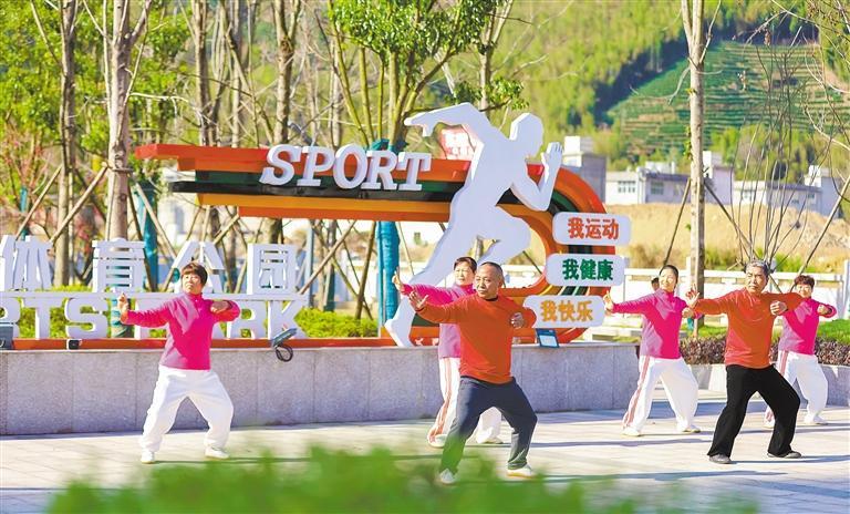 2月21日,福建省南平市政和县智慧体育公园,市民在练习八段锦。 谢贵明摄(中经视觉)