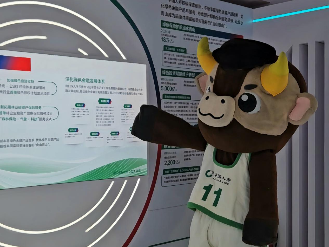 中国人寿吉祥物国寿牛介绍绿色金融成果 中经网记者 田云绯摄
